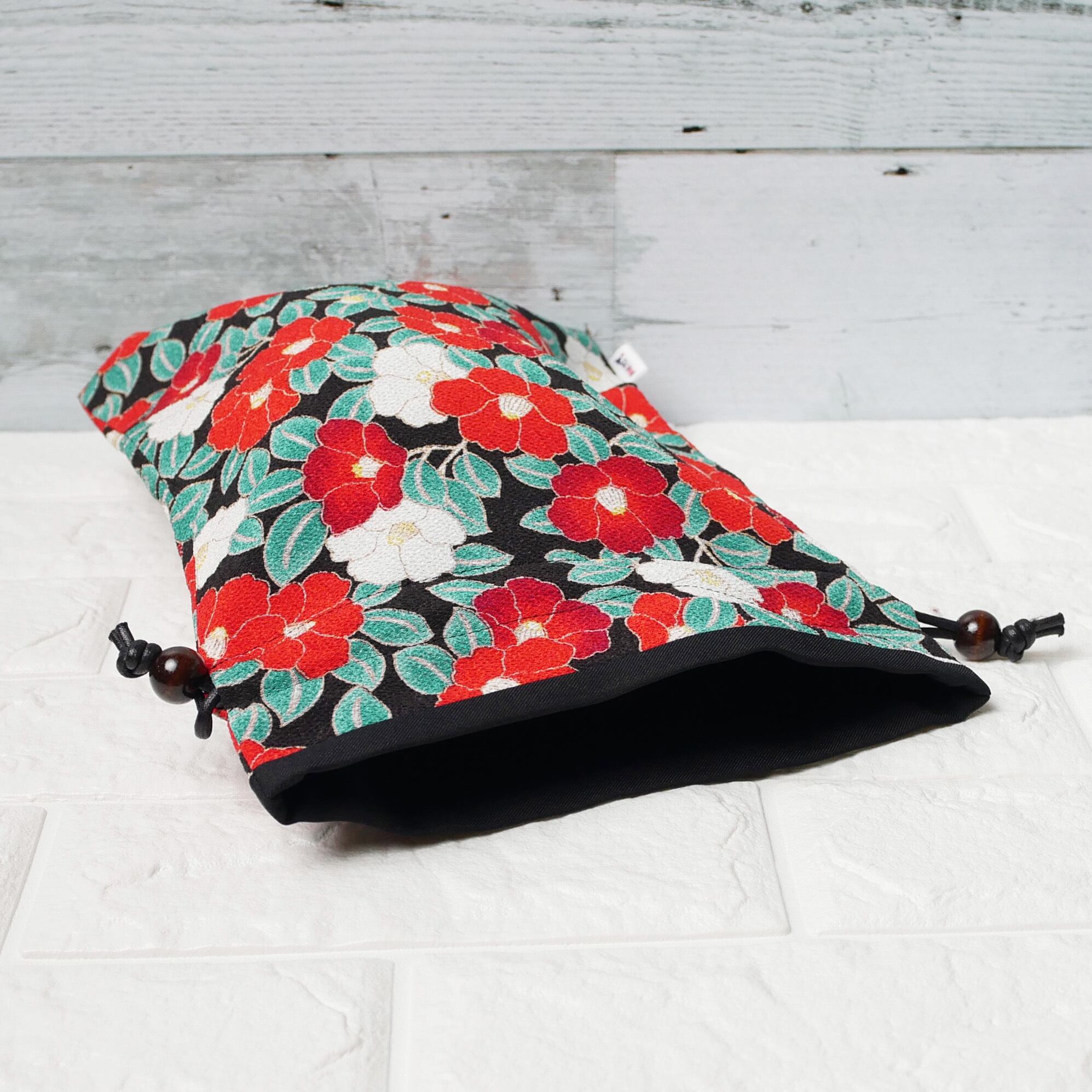 巾着/ポーチk10:■小物や御朱印帳入れに♪プレゼントやギフトにも♪旅行のお供に モダン椿