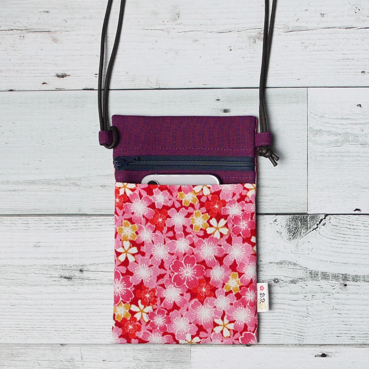 ポリエステルのちりめんと和織生地で作ったポシェットです。