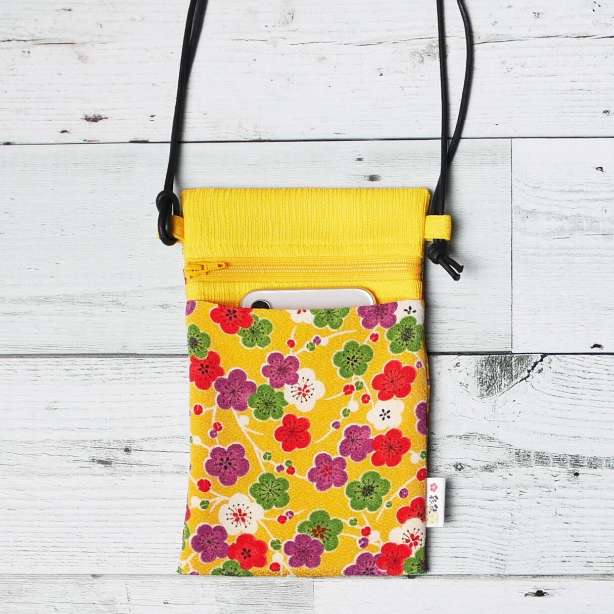 ポリエステルのちりめんと和織生地で作ったポシェットです。